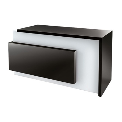 Balcão Ceriotti Volume em branco e preto com gavetas.